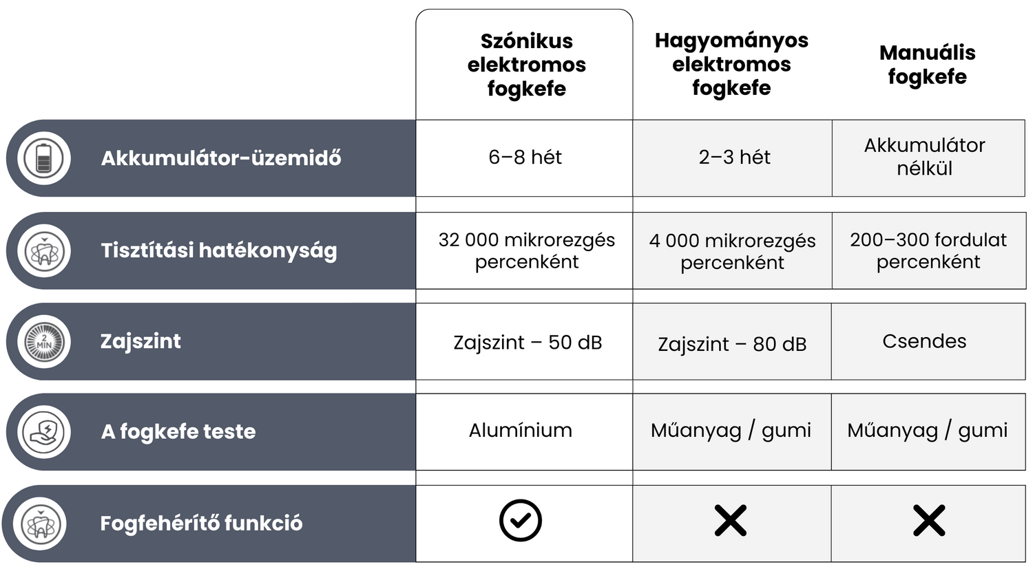 A hagyományos elektromos fogkefékkel ellentétben a szónikus fogkefék rendkívül magas frekvenciájú vibrációval működnek, ami kiemelkedő tisztítási hatékonyságot eredményez.